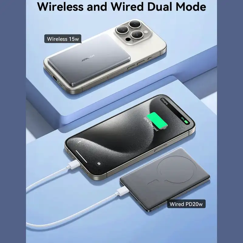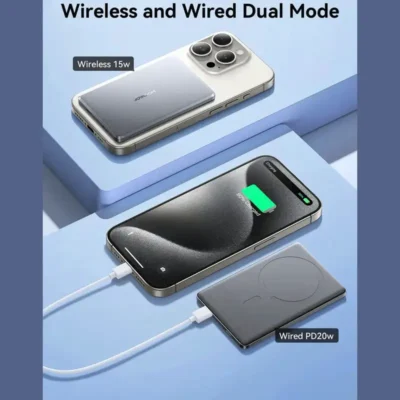 پاوربانک JOYROOM JR-PBM08 یک شارژر بیسیم و سیمی فوقالعاده ظریف با ظرفیت 5000 میلیآمپرساعت است که برای شارژ سریع و ایمن انواع گوشیهای هوشمند طراحی شده است. این مدل با بدنه آلومینیومی، شارژ بیسیم مگنتی 15 وات و خروجی تایپسی 20 وات، گزینهای حرفهای برای کاربران مدرن، مسافران و علاقهمندان به فناوریهای شارژ سریع محسوب میشود.