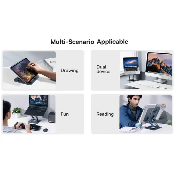 پایدار، ارگونومیک و چندمنظوره است که با قابلیت چرخش ۳۶۰ درجه، تنظیم ارتفاع تا ۳۱ سانتیمتر و ساختار مقاوم آلومینیومی، انتخابی ایدهآل برای کاربران لپتاپ و تبلت محسوب میشود. این محصول با طراحی مدرن و عملکرد حرفهای، همراهی مطمئن برای محیطهای کاری، آموزشی و خانگی است.