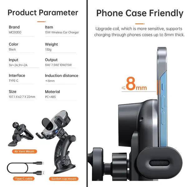 پایه نگهدارنده و شارژر بیسیم مک دودو مدل CH-160 با توان 15 وات، طراحی مقاوم و قابلیت تنظیم زاویه، انتخابی مناسب برای کسانی است که به دنبال یک محصول کاربردی، ایمن و زیبا برای شارژ بیسیم و نگهداری گوشی در محیطهای مختلف هستند. این محصول ترکیبی از راحتی، عملکرد و طراحی هوشمندانه را در اختیار کاربران قرار میدهد.
