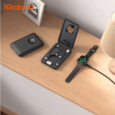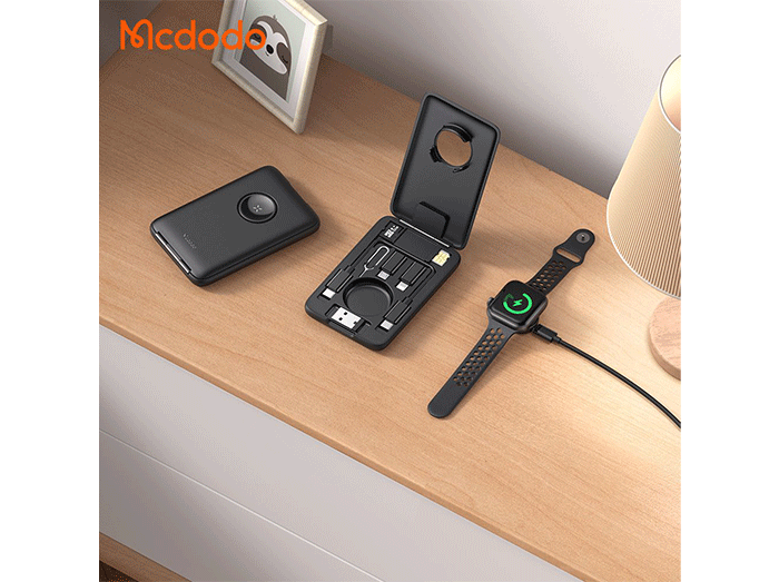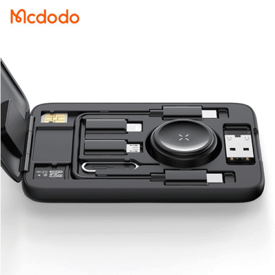 پک کابل چندمنظوره مک دودو مدل Mcdodo CH-244 با شارژر بیسیم اپل واچ، مبدلهای متنوع و جعبه ذخیره سیمکارت و کارت حافظه