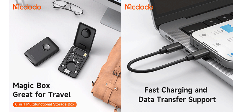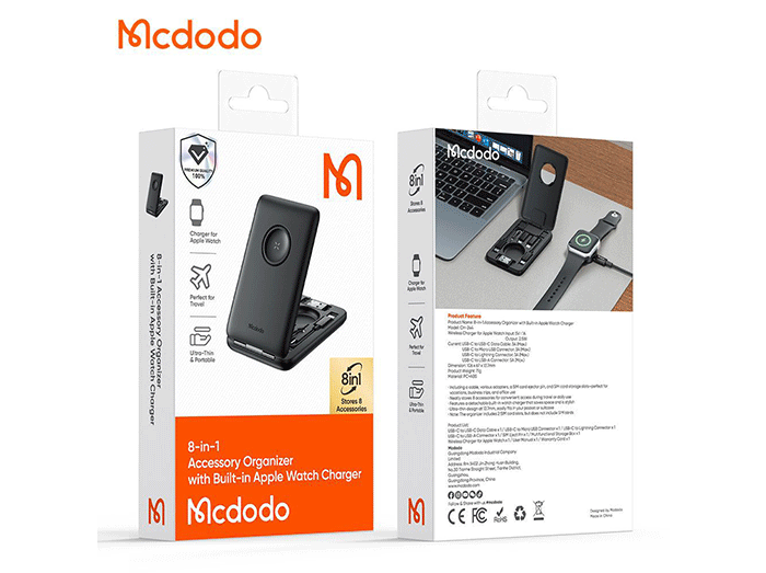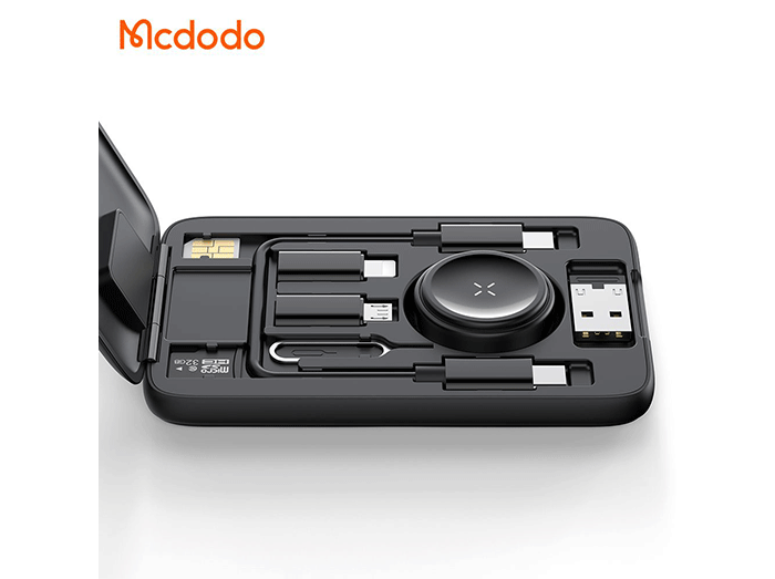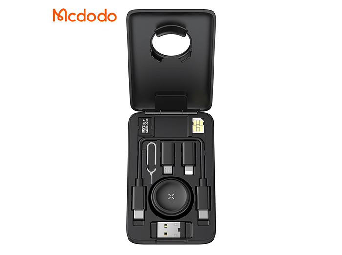 پک کابل چند منظوره مک دودو Mcdodo CH-244 با شارژر بیسیم اپل واچ، مبدلهای متنوع و جعبه ذخیره سیمکارت و کارت حافظه