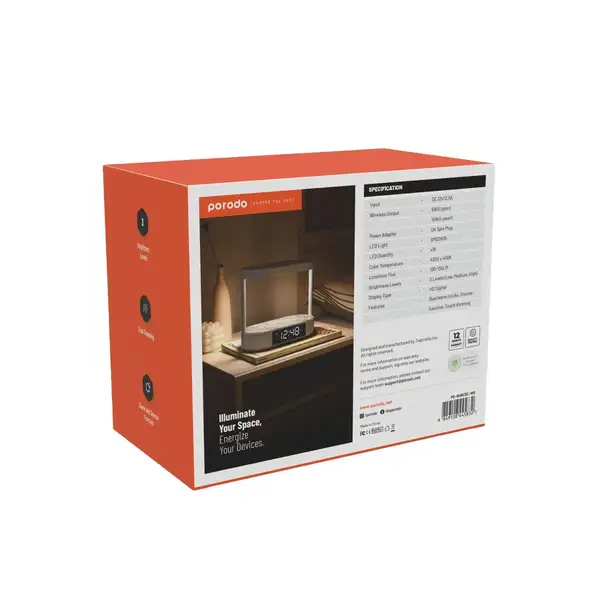 چراغ خواب پرودو مدل PORODO PD-BLWCDC-WH با ترکیب نورپردازی ملایم، شارژر بیسیم و ساعت دیجیتال، یک محصول چندمنظوره و کاربردی برای خانههای مدرن است. این دستگاه با طراحی مینیمال و امکانات پیشرفته، تجربهای راحت و منظم را برای کاربران فراهم میکند و همراهی ایدهآل برای میز کنار تخت یا میز کار محسوب میشود.