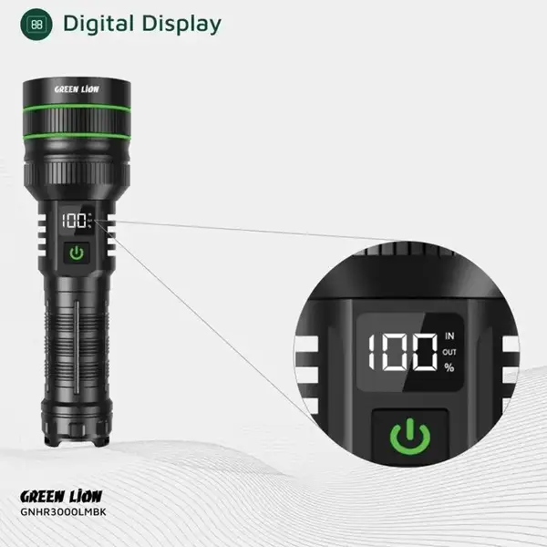 چراغ قوه شارژی گرین لاین Green Lion Hyper Ray Pro LED Torch GNHR3000LMBK