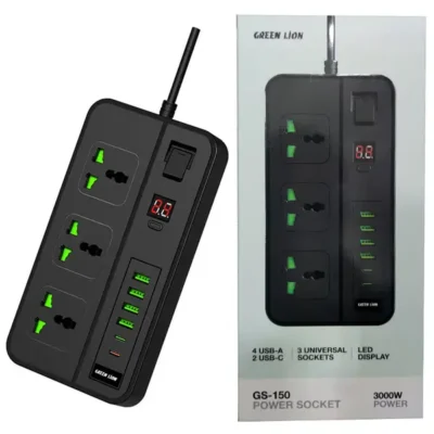 Green Lion GS‑150 Power Socket 3000W با توان بالا، پورتهای متنوع و سیستم ایمنی پیشرفته، یک انتخاب عالی برای مدیریت برق و شارژ دستگاههای روزمره است. این محصول با طراحی مقاوم و کیفیت ساخت ممتاز، همراهی مطمئن در خانه و محل کار محسوب میشود.