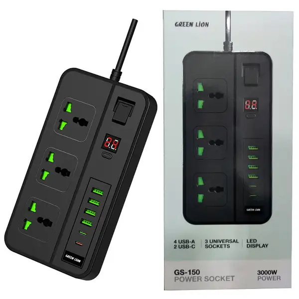 Green Lion GS‑150 Power Socket یک راهکار ایمن و قدرتمند برای مدیریت برق و شارژ دستگاههای خانگی و اداری است. این محصول با توان خروجی 3000 وات، طراحی مقاوم و پورتهای متنوع، انتخابی مناسب برای استفاده روزانه و حرفهای محسوب میشود.