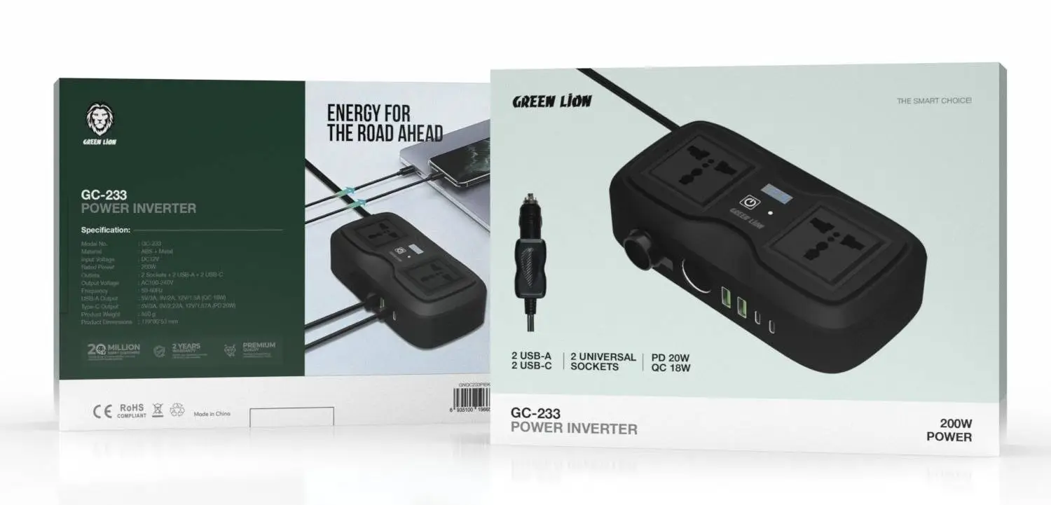 چندراهی و مبدل برق فندکی خودرو Green Lion GC-233 یک دستگاه چندکاره و قدرتمند است که امکان تبدیل برق فندکی خودرو به پریز برق خانگی و همچنین چندین خروجی دیگر را فراهم میکند. این محصول با توان