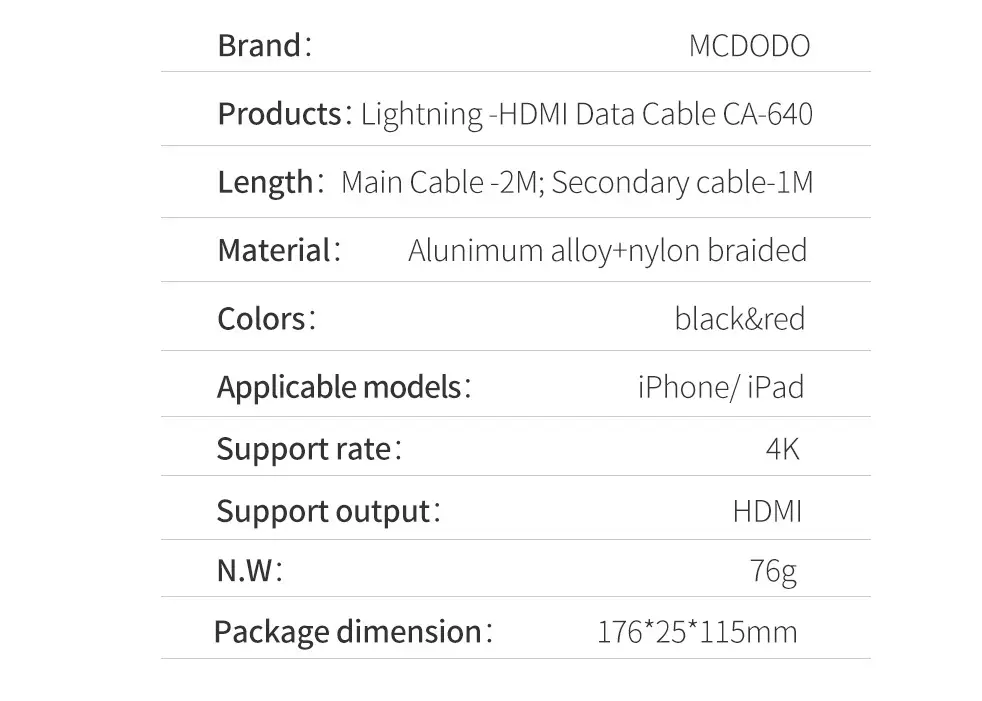 کابل تبدیل انتقال تصویر لایتنینگ به HDMI مک دودو مدل MCDODO CA-6400