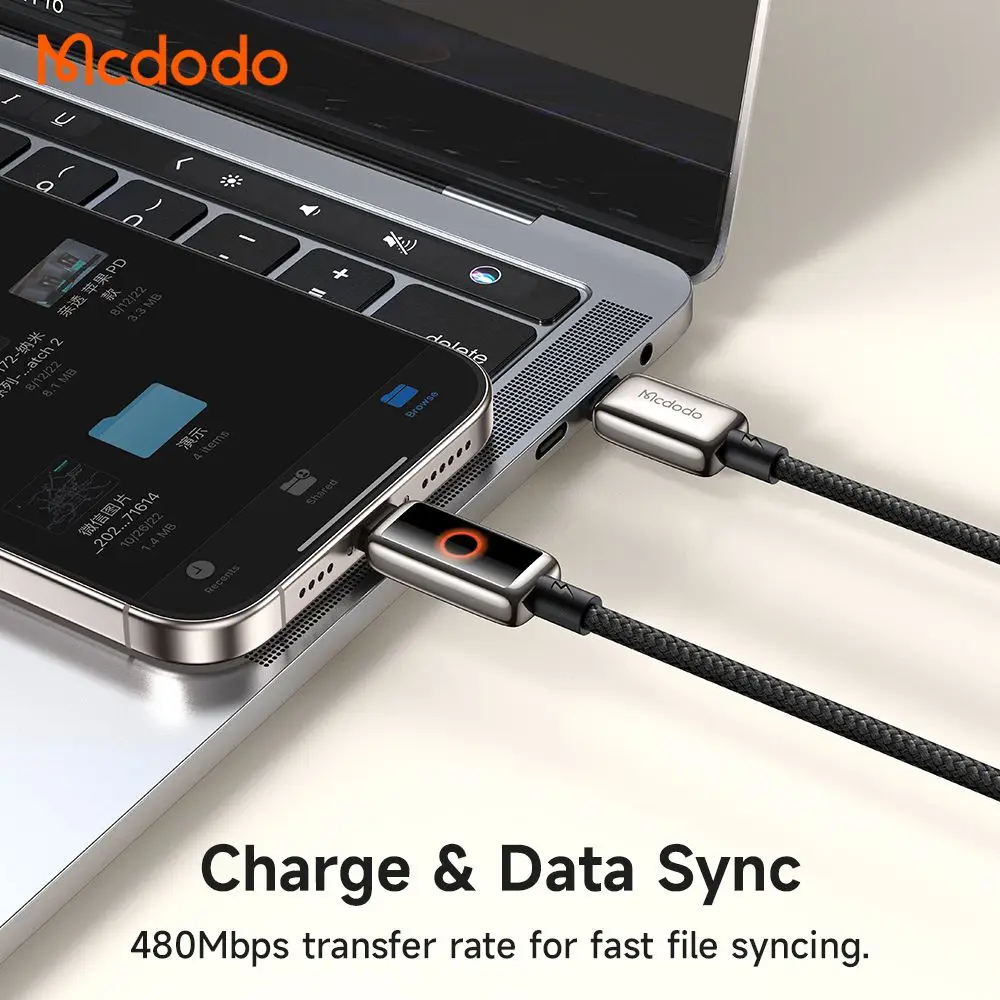 کابل شارژ سریع تایپ سی به لایتنینگ 36 وات با قطع کن و نمایشگر و طول 1.2متر مک دودو مدل MCDODO CA-6670