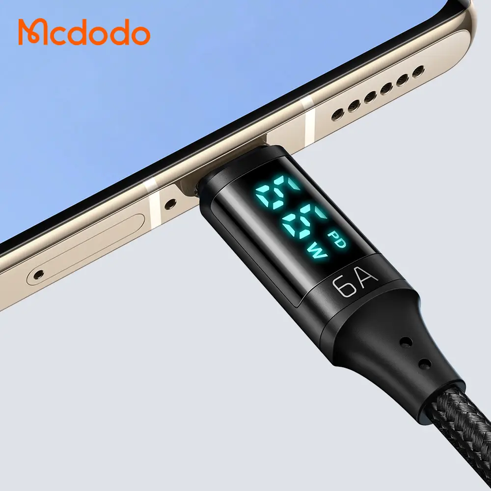 کابل شارژ سریع Type‑C با توان 66 وات دارای نمایشگر دیجیتال، طول 120 سانتیمتر مک دودو مدل MCDODO CA-1080
