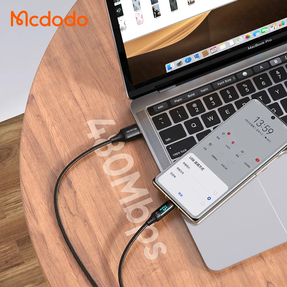 کابل شارژ سریع تایپ سی 66 واتی داراي نمایشگر دیجیتال طول 120 سانتيمتر مک دودو مدل MCDODO CA-1080