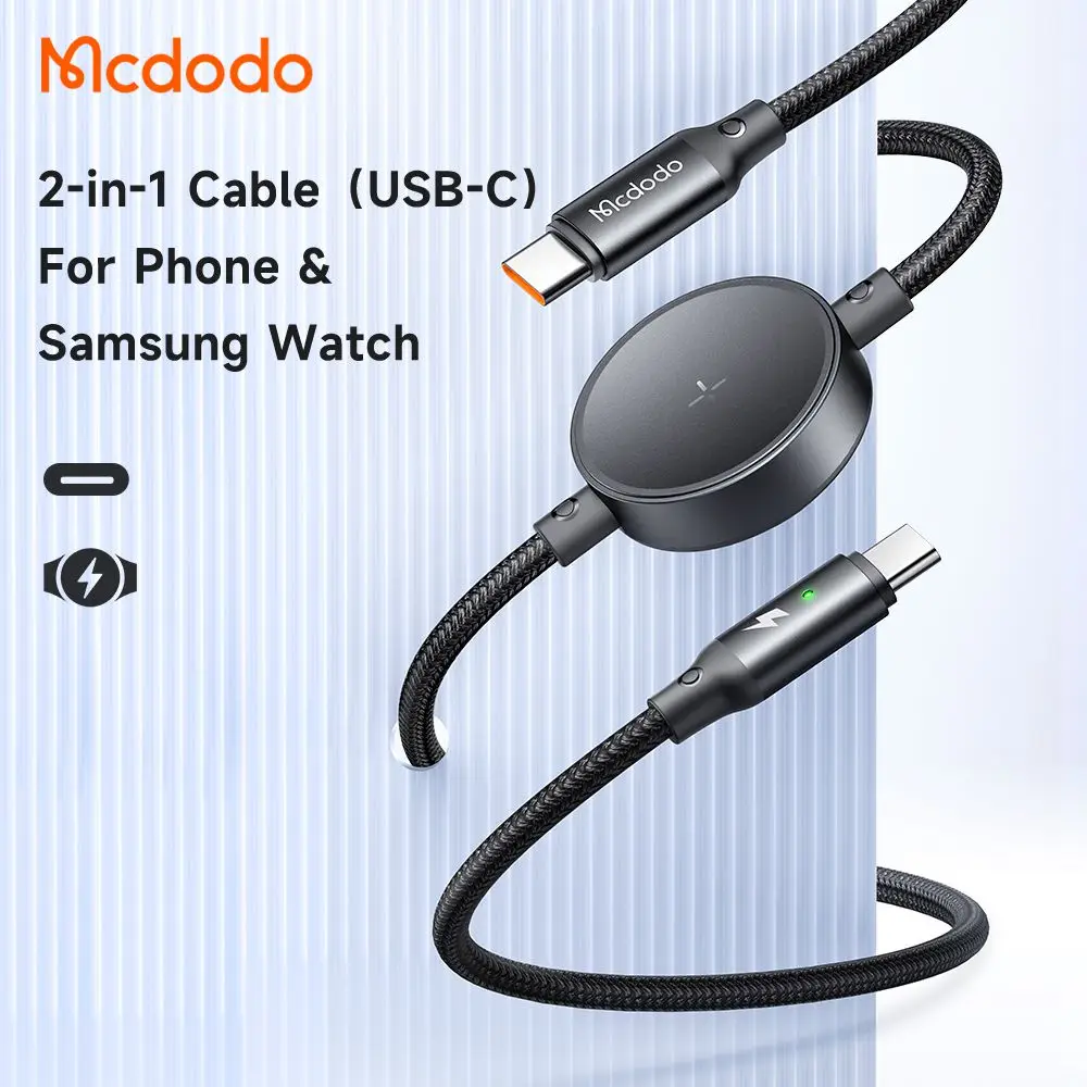 کابل شارژ 2کاره موبایل و ساعت سامسونگ واچ 60 وات تایپ سی به تایپ سی مک دودو مدل MCDODO CA-4170 طول 1.5متر