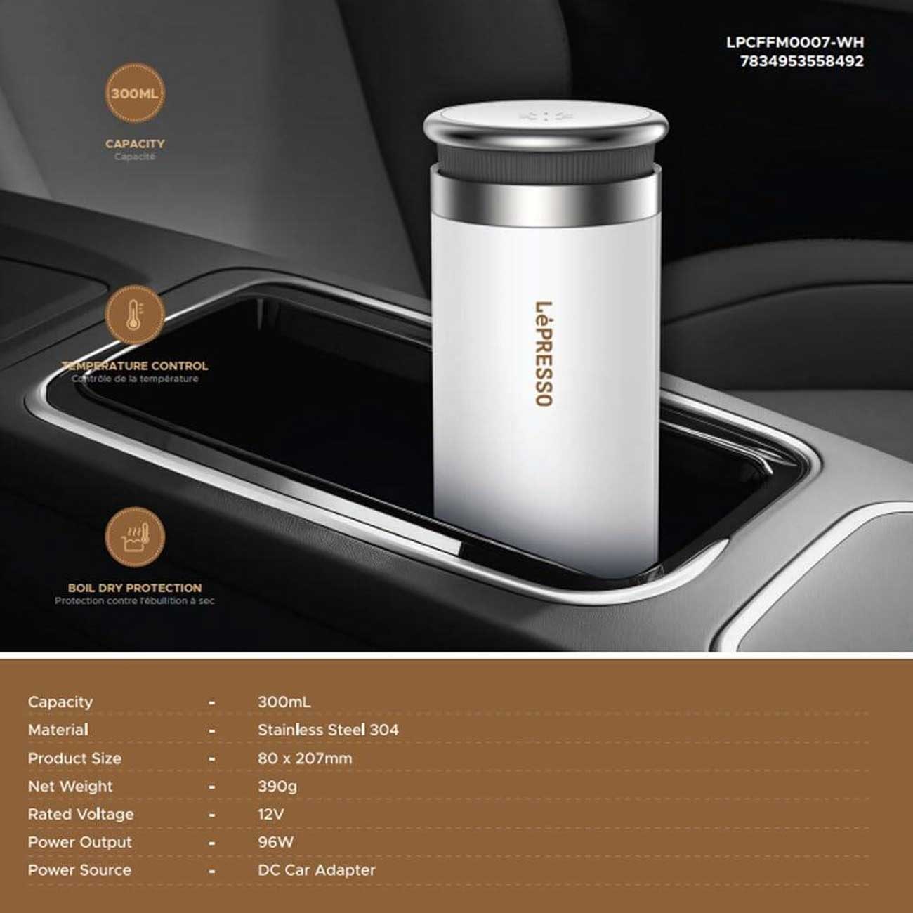 کتری برقی مسافرتی 300 میلی‌لیتری لپرسو مدل Lepresso Lp007 Portable Outdoor Electric Kettle With Car Adapter LPCFFM0007-WH