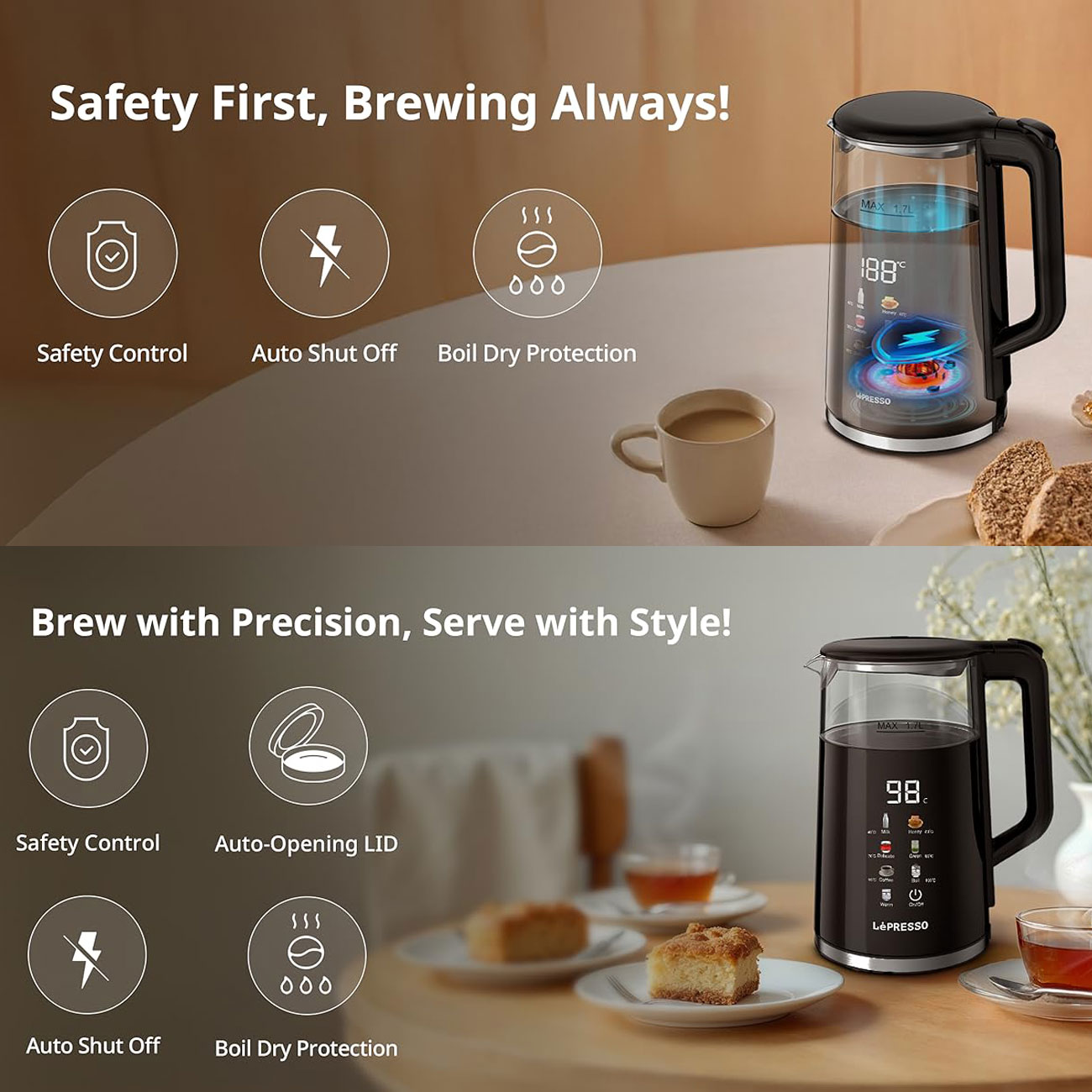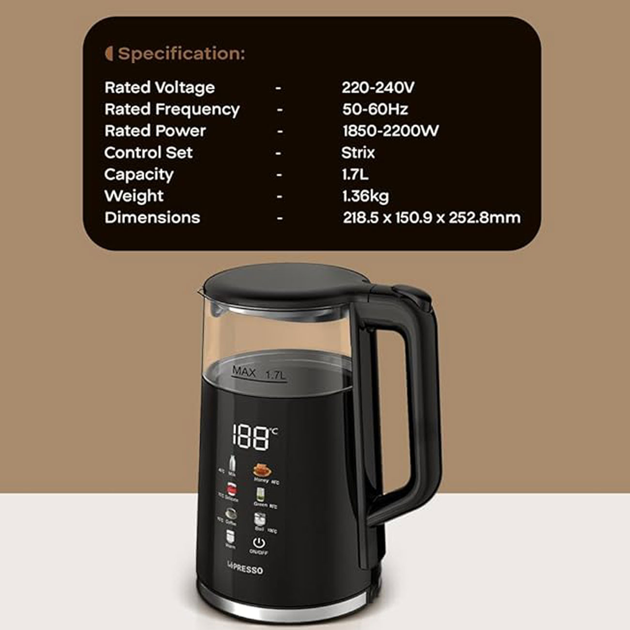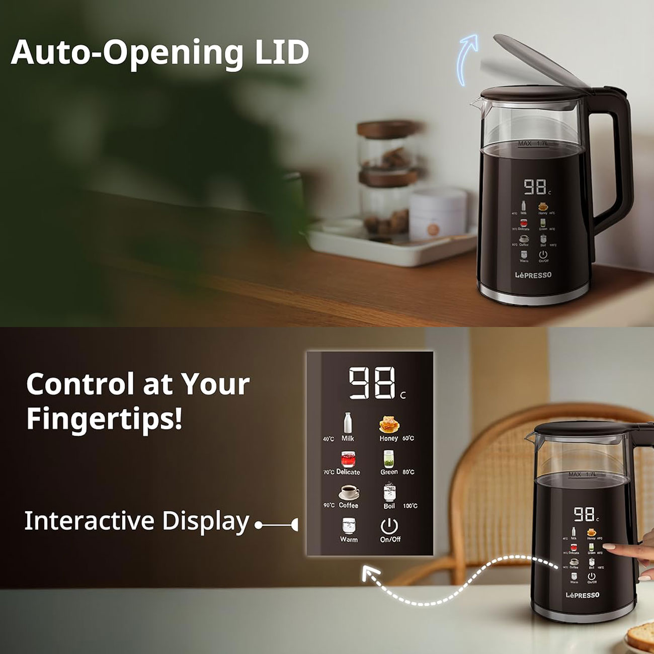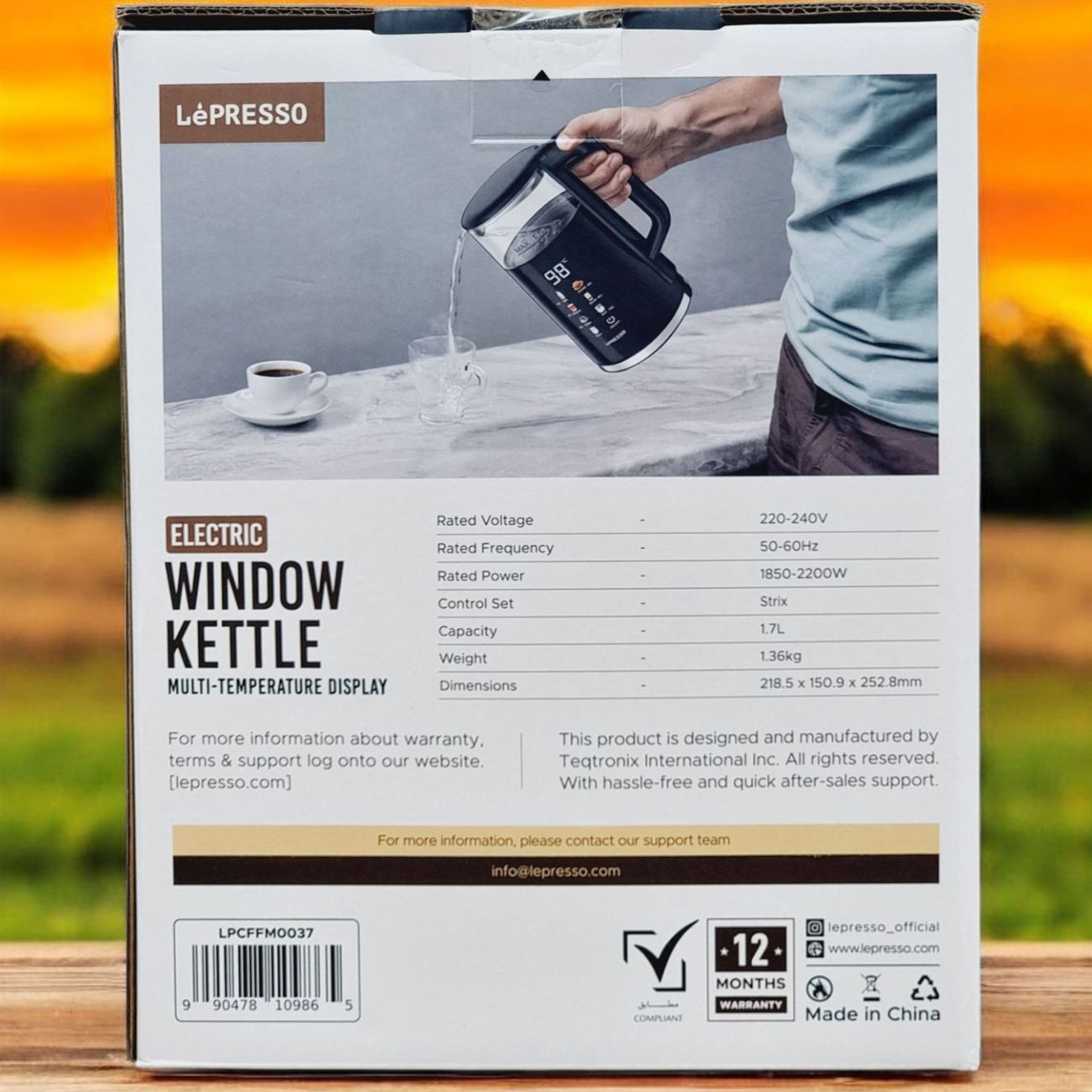کتری برقی چند دمایی با نمایشگر پنجره‌ای لپرسو Lepresso Electric Window Kettle Multi-Temprature Display LPCFFM0037