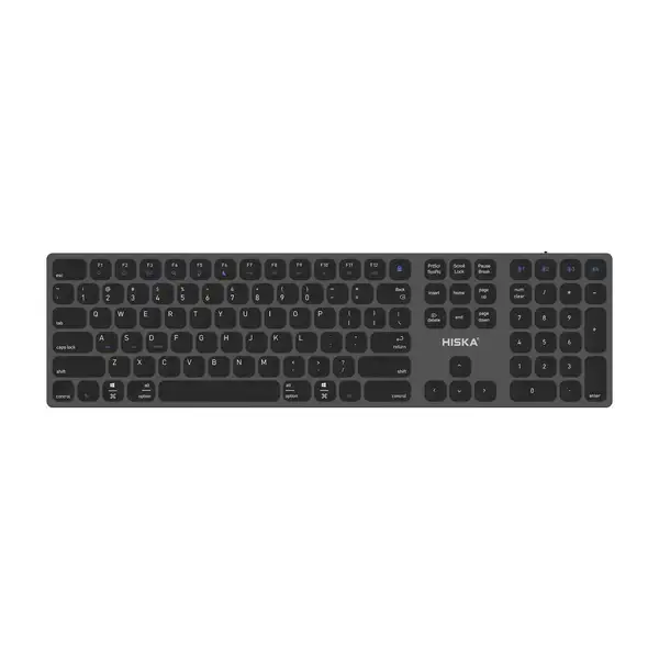 کیبورد بیسیم HISKA HX-KE245W یک مدل مدرن و خوشساخت با طراحی آلومینیومی و ضخامت بسیار کم است که برای کاربری اداری، خانگی و چندمنظوره طراحی شده است. این کیبورد با اتصال دوگانه بلوتوث و دانگل 2.4 GHz، آزادی عمل بالایی را در کار با انواع دستگاهها فراهم میکند و تایپ روان و کمصدا را به کاربران ارائه میدهد.