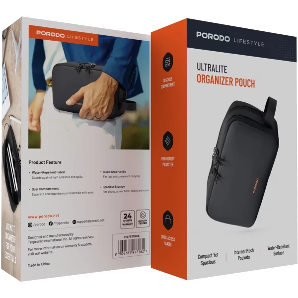 Porodo Lifestyle Ultralite Organizer Pouch یک کیف سبک و کاربردی برای نگهداری و حمل لوازم جانبی دیجیتال و شخصی است. این محصول با طراحی مینیمال و وزن بسیار کم، مناسب برای کسانیست که میخواهند وسایل کوچک خود مانند کابلها، شارژر، ایرپادز، پاوربانک یا حتی لوازم شخصی روزمره را بهصورت منظم و ایمن همراه داشته باشند.